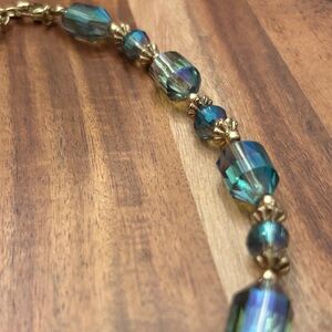 This stunning necklace features shimmering blue beads complemented by gold accents. Perfect for adding a touch of elegance to any outfit.