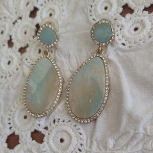 These stunning drop earrings feature a beautiful blue stone set in a gold frame, perfect for adding a touch of elegance to any outfit.