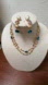 This stunning jewelry set features a gold chain with blue and cream accents. Perfect for adding a touch of elegance to any outfit. the Acqua Rose Jewels Collection.