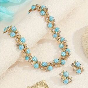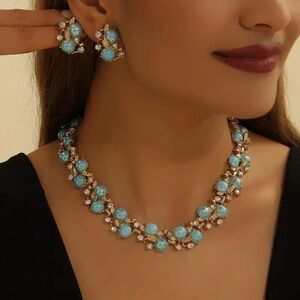 This stunning necklace set features vibrant blue stones set in a luxurious gold finish. Perfect for adding a touch of elegance to any outfit.