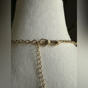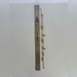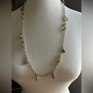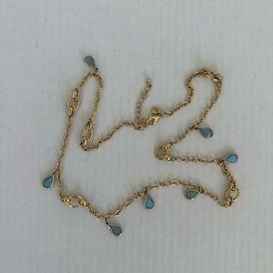 (#90)-This elegant necklace features a delicate gold chain adorned with blue teardrop accents. Perfect for adding a touch of sophistication to any outfit.