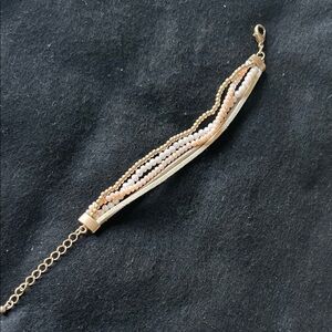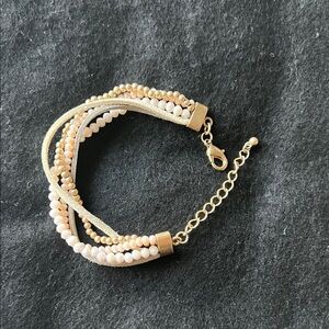 This elegant bracelet features a stunning combination of gold and cream beads, perfect for adding a touch of sophistication to any outfit.