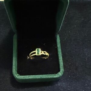This elegant ring features a stunning green stone set in a luxurious gold band. Perfect for adding a touch of sophistication to any outfit.