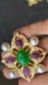 This exquisite brooch features a stunning green centerpiece surrounded by elegant purple accents and lustrous pearls, all set in a luxurious gold finish. Perfect for adding a touch of sophistication to any outfit.