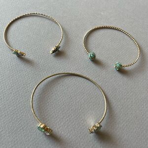 This elegant vintage bracelet set features a stunning combination of gold and green tones, perfect for adding a touch of sophistication to any outfit. The intricate design and vibrant colors make it a must-have accessory.