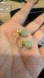 Chic stud earrings featuring a gold setting with green stones. Perfect for any occasion.