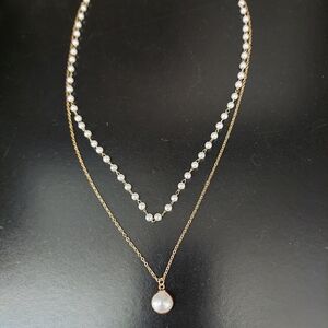 Elegant Gold and Pearl Layered Necklace Wedding Prom Fashion