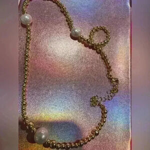 This elegant necklace features a stunning combination of gold beads and large freshwater pearls, perfect for adding a touch of sophistication to any outfit. Originally $44 from discount divas.