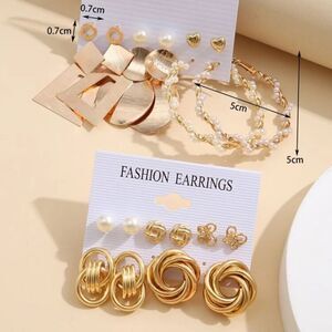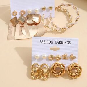 New , This stunning earring set features elegant gold and pearl designs, perfect for any occasion. Elevate your style with these versatile pieces.