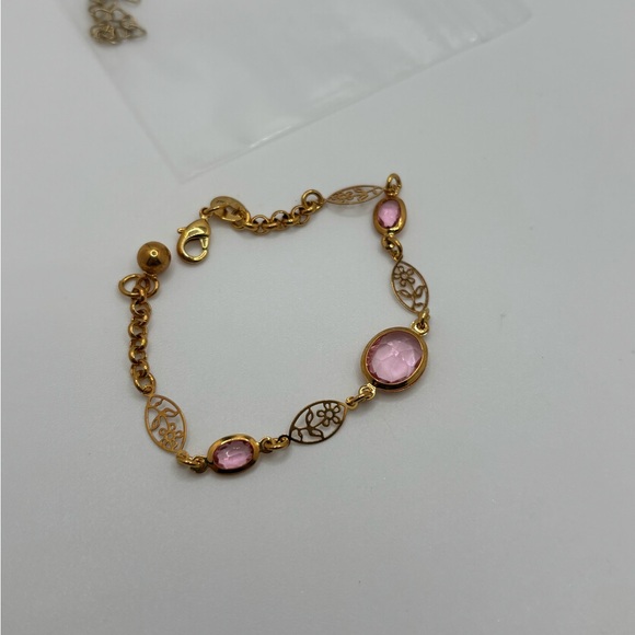 This elegant bracelet features a stunning combination of gold and pink elements, perfect for adding a touch of sophistication to any outfit.