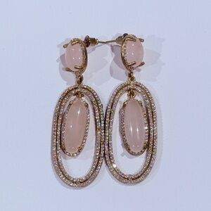 These stunning dangle earrings feature a beautiful combination of gold and pink, perfect for adding a touch of elegance to any outfit.