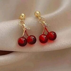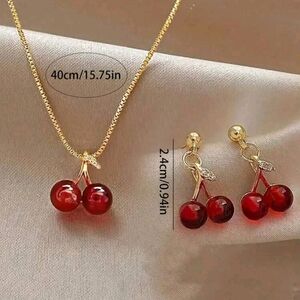 This elegant jewelry set features a stunning cherry design in vibrant red and luxurious gold tones. Perfect for adding a playful yet sophisticated touch to any outfit.