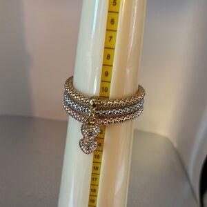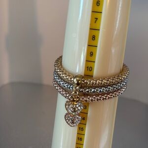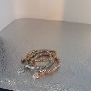 Stylish set of gold and silver bracelets. Perfect for any occasion. Adds a touch of elegance.