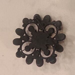 This exquisite brooch features a stunning gold centerpiece surrounded by shimmering silver and pink accents. Perfect for adding a touch of elegance to any outfit. imperfect in stone
