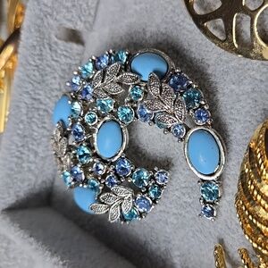 This exquisite brooch set features a stunning combination of gold and silver tones. Perfect for adding a touch of elegance to any outfit.
