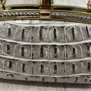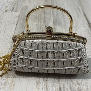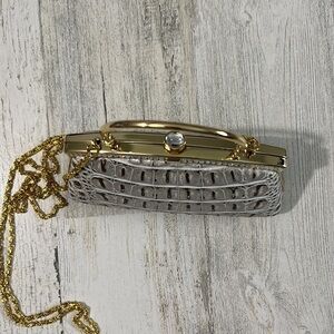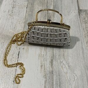 This elegant mini bag features a sophisticated silver design with a luxurious gold chain. Perfect for adding a touch of class to any outfit.