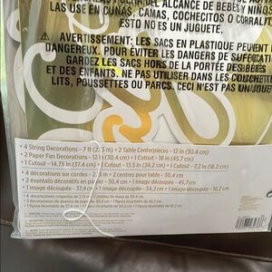 Transform your celebration with this elegant gold and white decorations set, featuring metallic gold accents and stylish designs. Perfect for milestone occasions, this set includes banners, rosettes, and fan decorations to create a sophisticated party atmosphere. The clear packaging showcases the beautiful contents, making it an ideal choice for any special event.