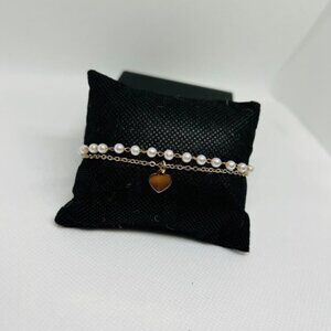 This elegant bracelet features a stunning combination of gold and white pearls, perfect for adding a touch of sophistication to any outfit.