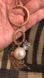 Stylish gold keychain featuring a pearl and crystal charms. Perfect for adding a touch of elegance to your accessories.
