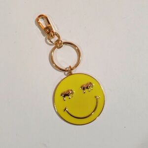 Elegant Gold tone & Yellow Smiley Face Chic, Stylish keychain - Women's Fashion