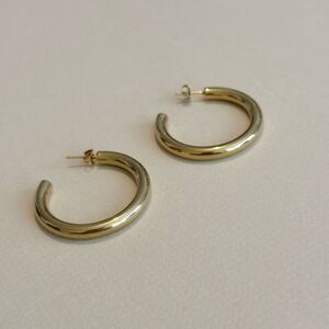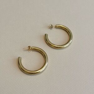 These elegant gold hoop earrings add a touch of sophistication to any outfit. Perfect for any occasion.