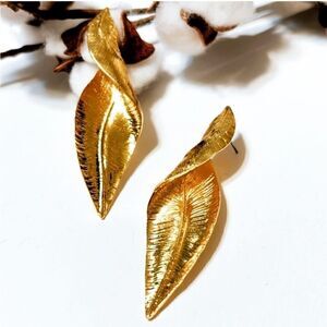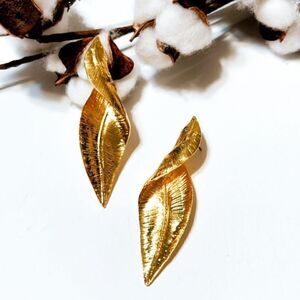 Add a touch of elegance with these stunning gold leaf earrings. Perfect for any occasion.