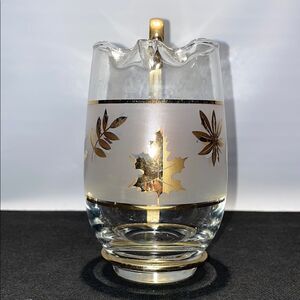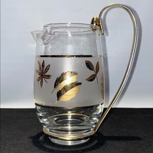 This elegant glass pitcher features a stunning gold leaf design, perfect for adding a touch of sophistication to your dining experience. The gold accents beautifully complement the clear glass, making it a stylish addition to any table setting.