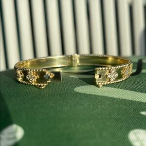 Gold Clover bracelet 14 karat gold. With cubic zirconia cut small to look like diamonds (THESE ARE NOT DIAMONDS)