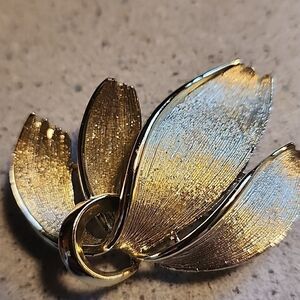 Add a touch of elegance to your outfit with this stunning gold-tone floral brooch. Perfect for any occasion.