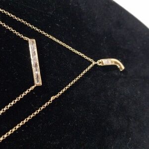 Make a statement with this chic and elegant gold-tone layered necklace featuring a personalized initial charm and a delicate bar pendant with sparkling accents. This versatile piece is perfect for adding a personal touch to any outfit, whether worn alone or layered with other jewelry.