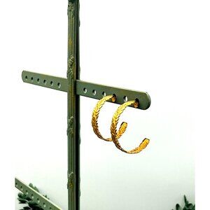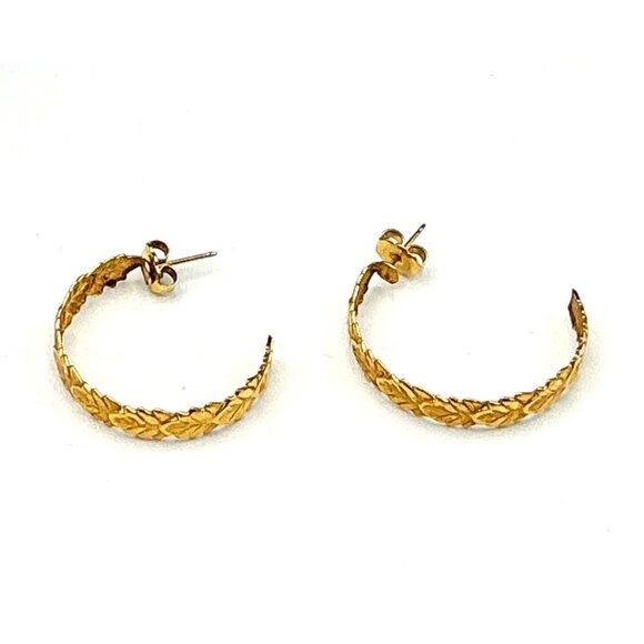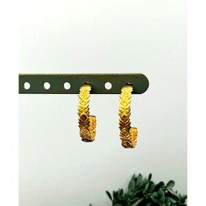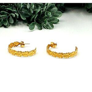 Elegant Gold-Tone Leaf Pattern Hoop Earrings