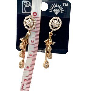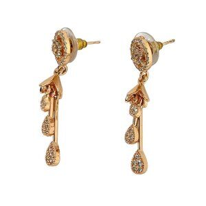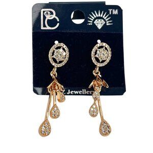 Elegant Gold-Toned Dangle Earrings Sparkling Crystals Oval Floral Chic Trendy