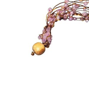 This stunning bracelet features delicate purple beads intricately woven on a gold wire. Perfect for adding a touch of elegance to any outfit.
