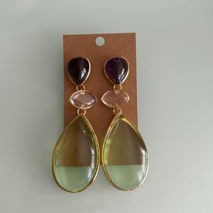 These elegant drop earrings feature a stunning combination of purple and gold tones, perfect for adding a touch of sophistication to any outfit.