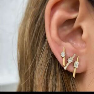 These elegant earrings feature a stunning combination of gold and silver tones, perfect for any occasion. The sleek design adds a touch of sophistication to your look.