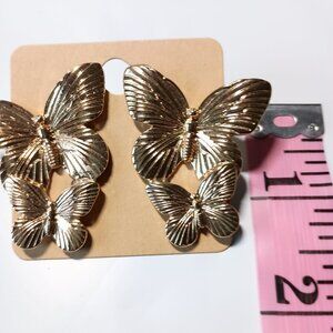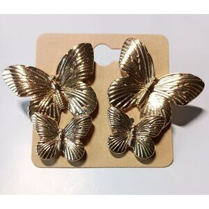 🦋 Elegant Goldtone Double Butterfly Earrings – Delicate & Stylish, New in Box