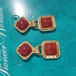 Enhance your style with these gold-tone drop dangle earrings, featuring stunning red stones for a bold and elegant look. Perfect for special occasions or everyday glamour!