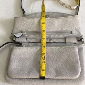 This stylish gray crossbody bag is perfect for any occasion. Its sleek design and versatile color make it a must-have accessory.