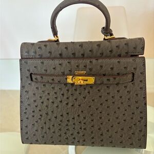 Elegant Gray Ostrich Vegan Handbag Very Durable