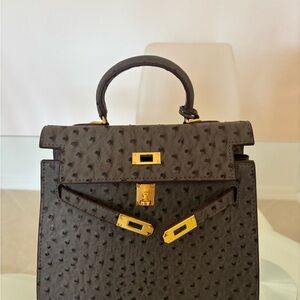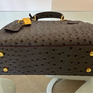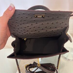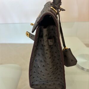 Discover elegance with this luxurious gray ostrich leather handbag. Perfect for any occasion, this bag combines style and functionality. With strap for crossbody. Measurements 10x9x4