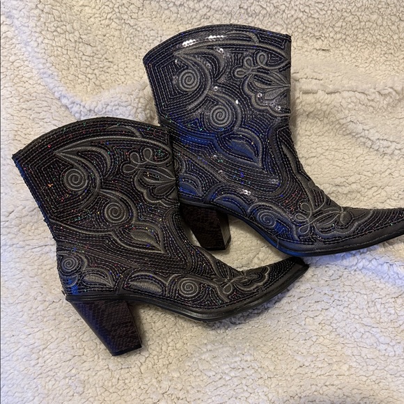 Step out in style with these elegant gray patterned heeled boots. Perfect for any occasion, these boots add a sophisticated touch to your ensemble.