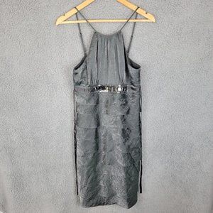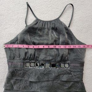 This elegant gray sleeveless dress is perfect for any occasion. Its sleek design offers a sophisticated look. Ideal for evening events or a night out.
