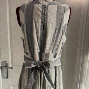 This elegant gray striped dress offers a timeless look for any occasion. Perfect for both casual and formal settings.