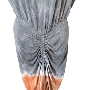 Step out in style with this elegant gray and orange maxi dress. Perfect for any occasion, it offers a blend of sophistication and comfort.