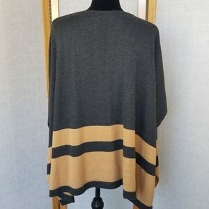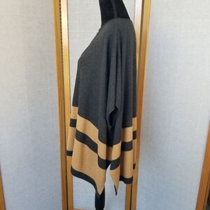 Stay stylish and warm with this elegant gray and tan poncho. Perfect for layering, this versatile piece adds a touch of sophistication to any outfit.