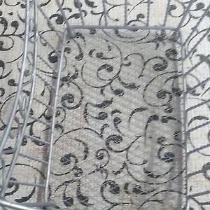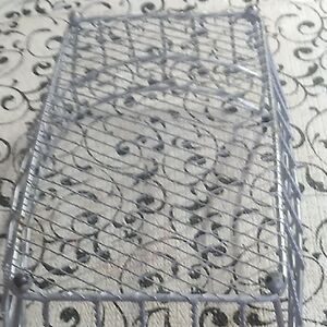 Stylish gray metal wire footed basket with intricate scroll design. Perfect for home decor or storage.It is approximately 7 inches by 9 inches.