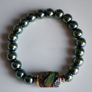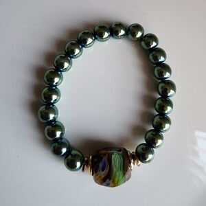 This elegant bracelet features lustrous green hematite beads and a striking multicolor accent piece. Perfect for adding a touch of sophistication to any outfit. NEW HANDMADE ✨️