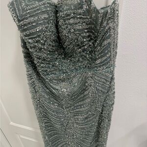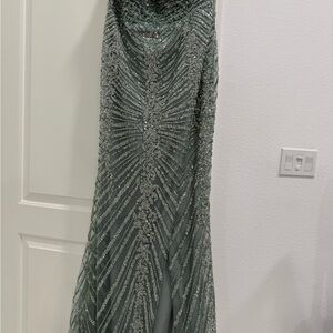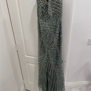 Stunning green gown with intricate beadwork. Perfect for formal occasions.