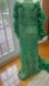 Stunning green gown with intricate beadwork and ruffled sleeves. Perfect for formal occasions.