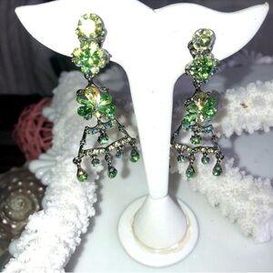 Add a touch of elegance with these stunning green chandelier earrings. Perfect for any occasion.
